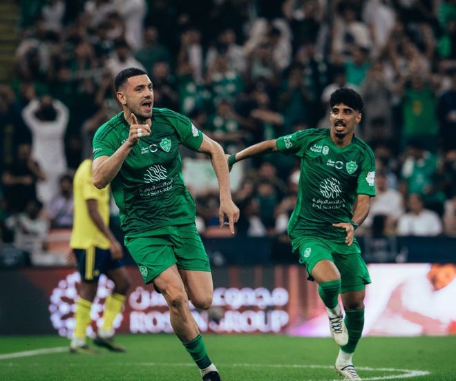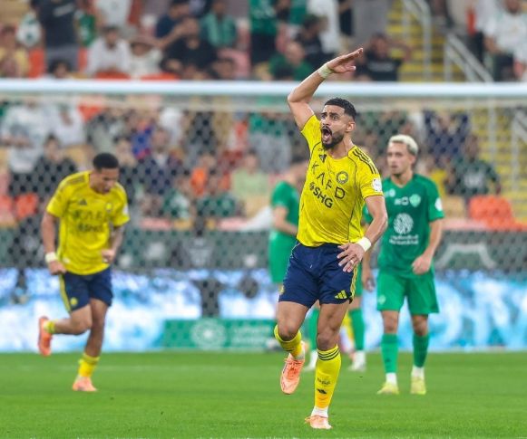 連丟2球后利雅得勝利才如夢初醒,第32分鐘,阿姆里禁區(qū)外圍轟出一腳大力遠射,桑比意外撲球脫手不慎將球漏進球門,1:2!第42分鐘,阿姆里右路斜線傳中,C羅門前頭球擦著橫梁出界;第44分鐘,布羅佐維奇角球旋入禁區(qū),阿姆里頭球破門同樣上演梅開二度,2:2!半場結(jié)束前,還是加萊諾左路的突破橫傳,托尼打門擊中立柱差點上演帽子戲法。